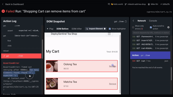 Lastly, we are exploring the use of DeploySentinel in our CI/CD pipelines to troubleshoot flaky tests. Since DeploySentinel provides the whole DOM, network, and console events when the test fails, this is the best way to debug flaky tests and understand the root cause of the problem. Trust me, it is way better to see the DOM than just try to guess what is wrong by looking at screenshots or videos.