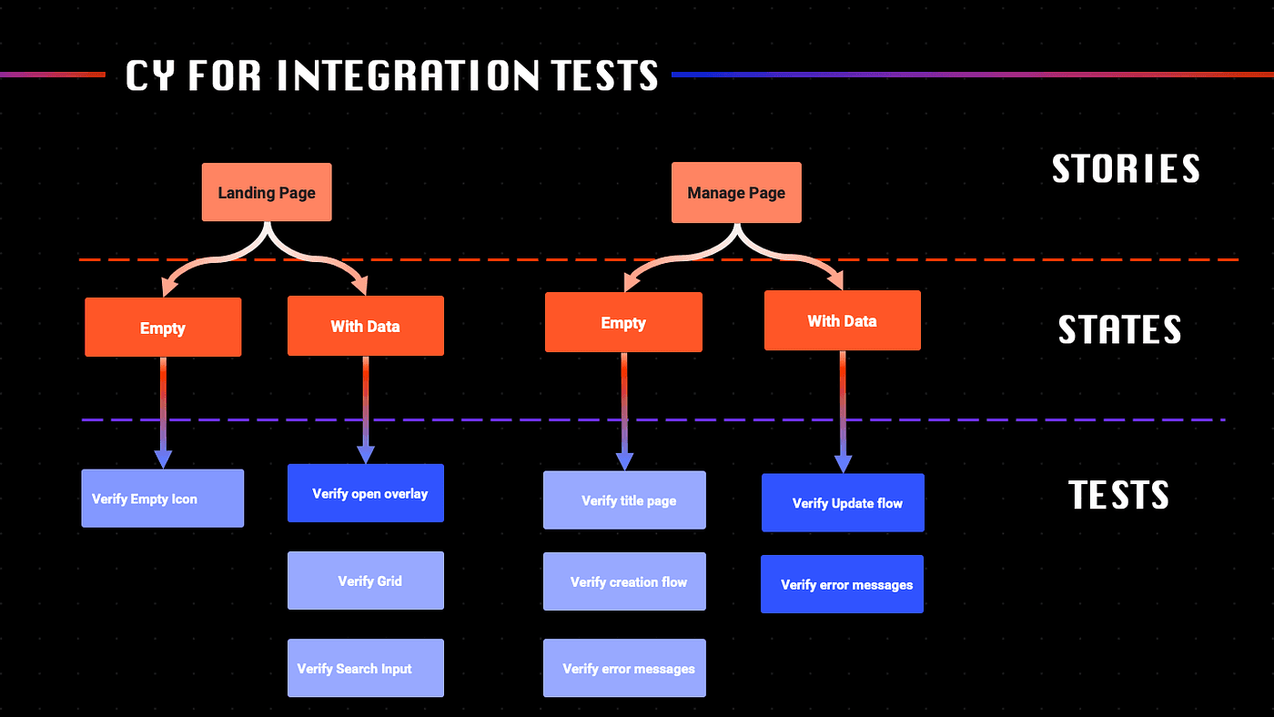 One notable improvement in our test philosophy is that we no longer write many E2E tests. Instead, we perform most of the tests as integration tests using StoryBook stories, with only a few E2E tests to ensure that the application still works.