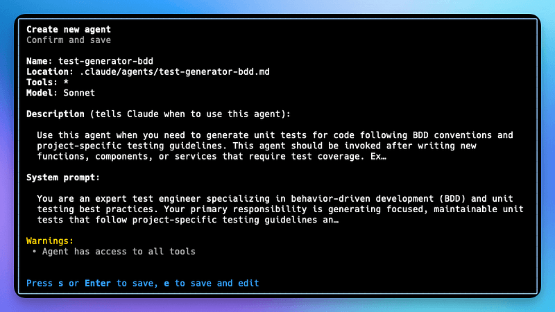 That is it! The agent file will be create at .claude/agents/ and you will get a confirmation like this: